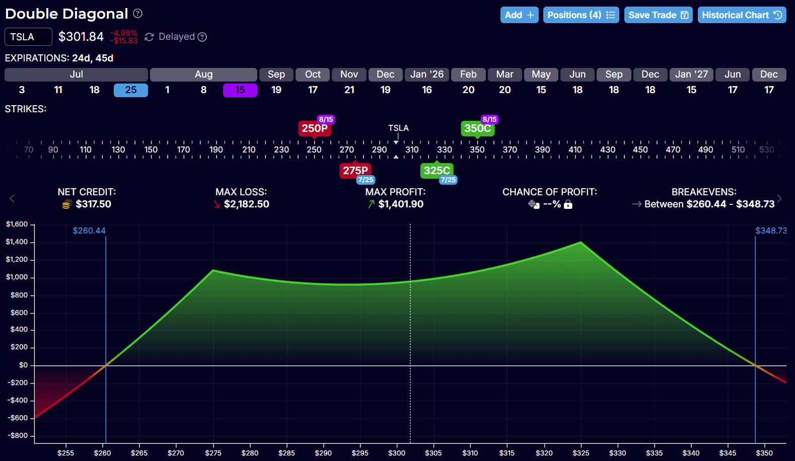 - Defined, Low-Medium Risk Strategies (e.g., Iron Condors, Credit Spreads): The remaining 25% or more of the capital should be deployed in defined, low-to-medium risk strategies. These strategies limit potential losses, making them suitable for complementing the higher-risk components of the portfolio.